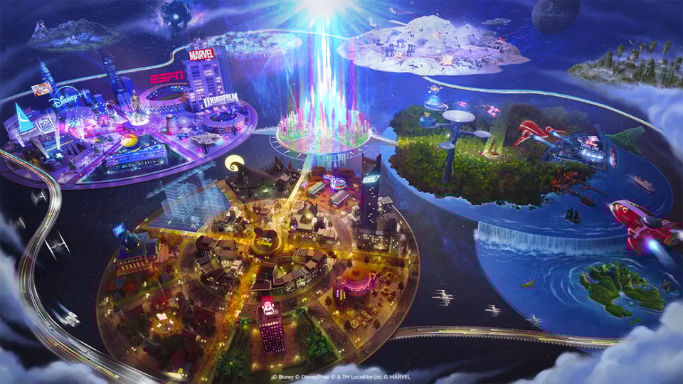 Going by the image shared by Disney in the release (embedded above) you can see a LOT. At first glance I count Wreck-it Ralph, Lilo and Stitch, Stark Industries, Halloween Town, Pandora, Hoth, The Death Star, ESPN, Lucasfilm Pixar... hell, even Disney Cruise Lines gets its own harbour area. All across different areas/zones/islands and each one with its own purpose.