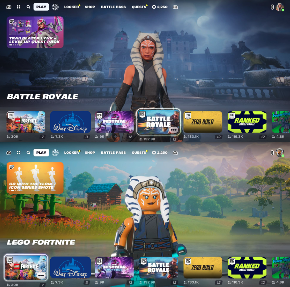 I would also fully expect to be able to buy items within the Disney experience and then have those items to wear while playing Battle Royale. Did you buy a Tie Fighter to fly around in The DU? Expect to unlock that as a glider in Fortnite etc.