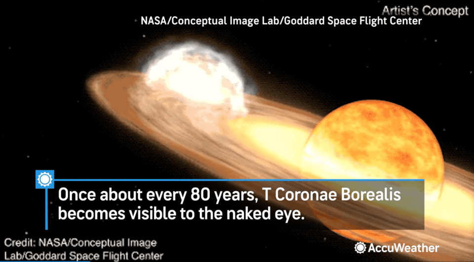 The "star" is an explosion, also known as a nova event, that happens around once every 80 years. It will be so bright that it can be seen with the naked eye.