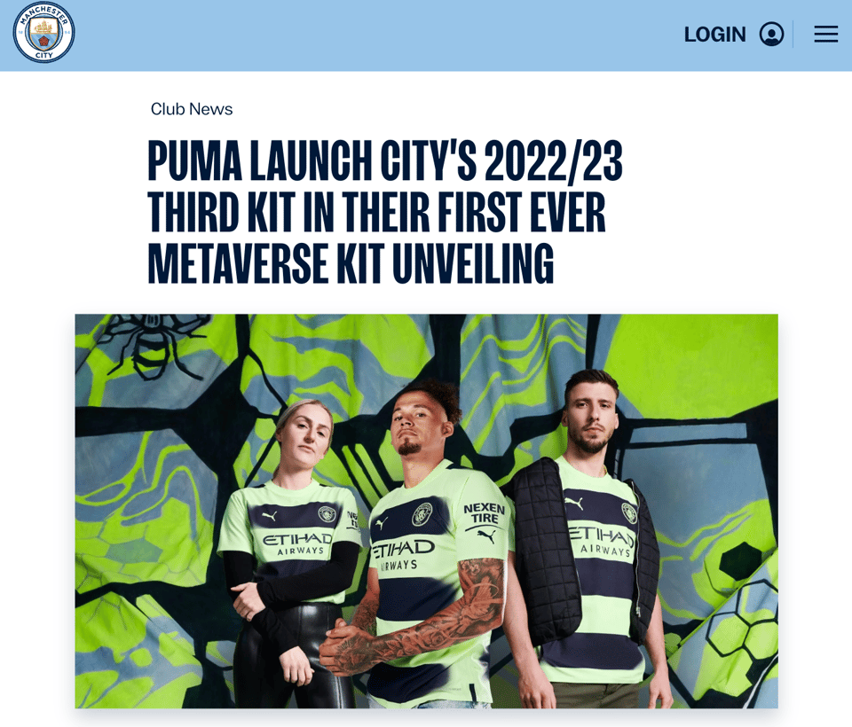 I think I was on summer break when the Man City one dropped but it definitely appears in one of my more up to date metaverse presentations and the v/o for it goes something like this: