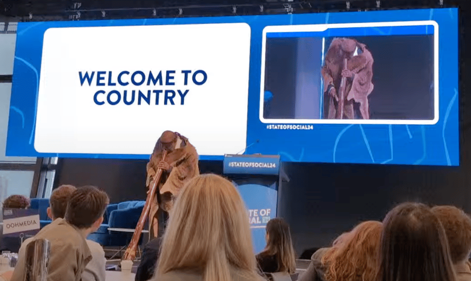 At the start of State of Social (and at the start of a few presentations), we had a ‘Welcome to Country’. The opening one, pictured, was given by Deputy Mayor Barry Winmar (here he is doing another one).