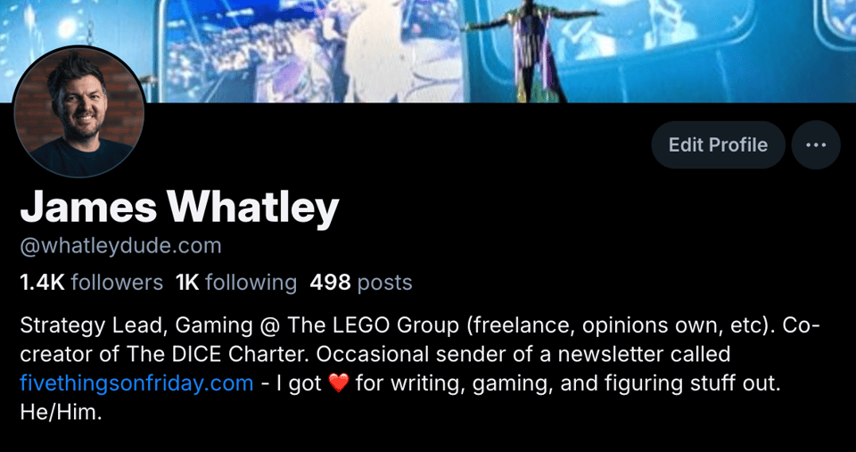 I’ve figured how to do the verification thing with whatleydude dot com (which is why there’s no bsky.social in my username - so fancy), so if you haven’t clicked on the link above you can instead search for @whatleydude and you’ll find me. The website verification thing is also a good way to know it’s actually definitely the person/company you’re talking to (you can find out how to do that here - shout if you need a hand, you’ll need access to your domain’s control panel).