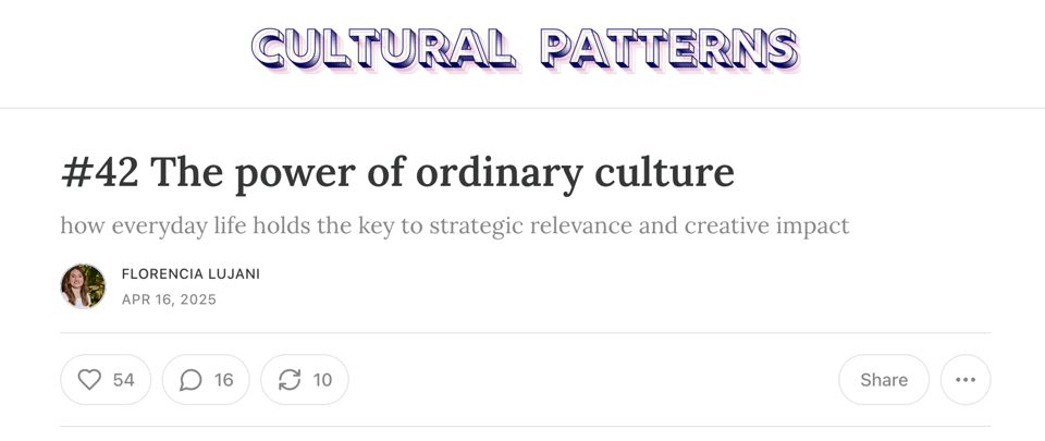 The original ambition for this week's THING 1 was to talk about this excellent article from Florencia Lujani - 'The Power of Ordinary Culture' -