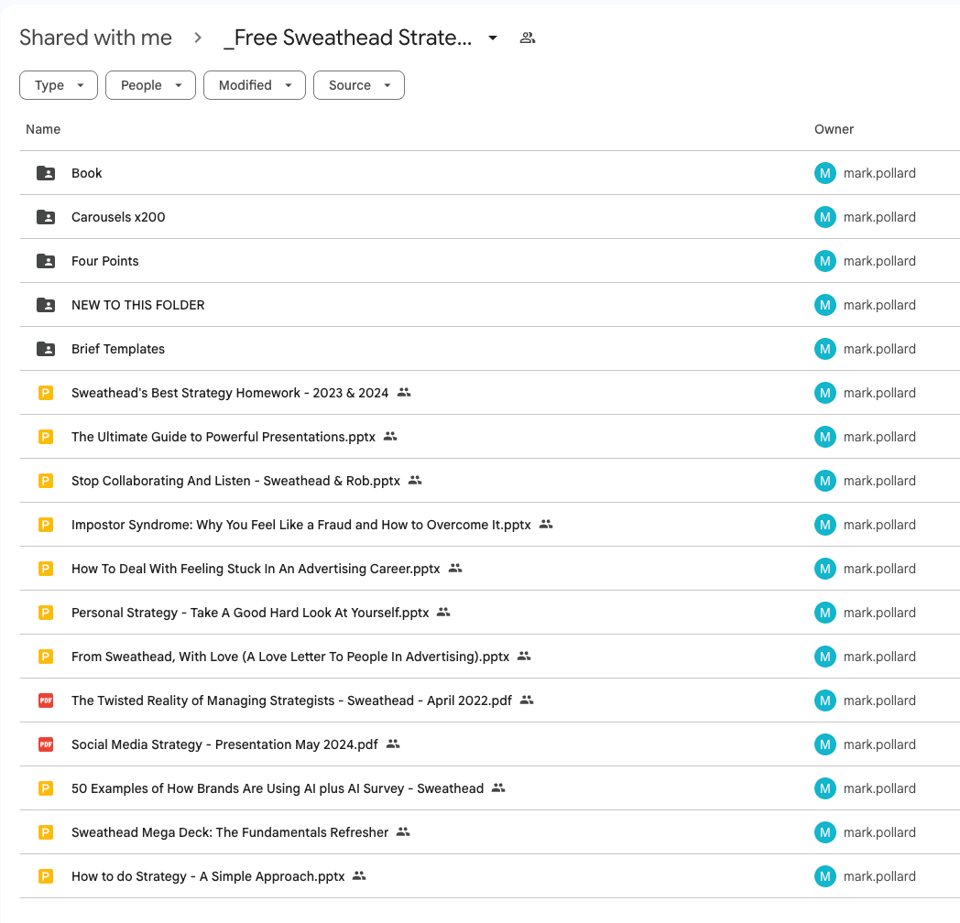 Are you a strategist? Junior? Mid? Senior or director? If you are then you’ve probably almost certainly heard of Mark Pollard, strategy friend, and his work as Sweathead - as events, get togethers, and of course the podcast (I was even on it once).